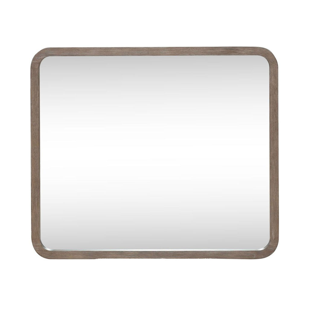 Liberty Furniture South Bend Landscape Mirror in Burnished Clay 306-BR51. Create a different point of view with the South Bend landscape mirror. Meticulously crafted using Rubberwood solids and Small Split Heart Cathedral White Oak veneers, this mirror features a Burnished Clay finish. The mirror showcases softly rounded edges that exude a sense of gentle sophistication, adding a subtle touch of charm to your decor. Crafted to perfection, the mirror boasts a 1-inch beveled edge, providing a classic yet contemporary aesthetic that beautifully frames your reflection. The beveled edge adds depth and dimension to the mirror, creating visual interest and elevating the overall look of your room. Use the included bolt on supports to attach the mirror to the South Bend 6 drawer dresser. Upgrade your space with the South Bend landscape mirror, a sophisticated and stylish accent that reflects your impeccable taste and enhances the beauty of your surroundings.