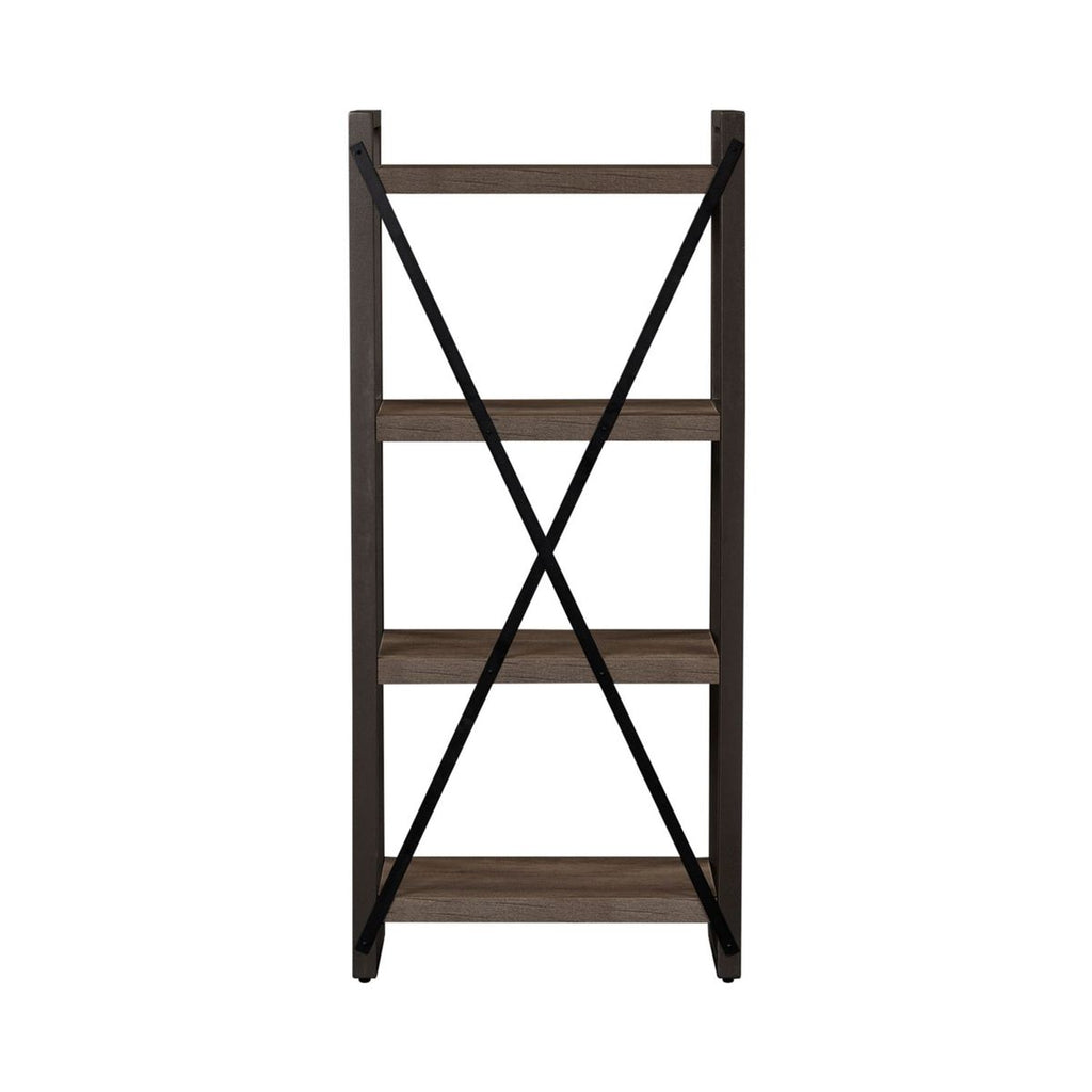 Liberty Furniture Tanners Creek Pier Unit in Greystone 686-EP60. Maximize storage and convenience with the Tanners Creek pier unit. Crafted with melamine and rubberwood solid frame, this piece features a rustic Greystone finish floating shelf design and a decorative metal "X" accent on the back supported by open legs in a dark pewter faux metal finish. The melamine is scratch resistant, sure to make this piece last in any home. Pair with the 63" or 76" tv console to complete the set, or utilize this piece as shelving, as it can stand alone.