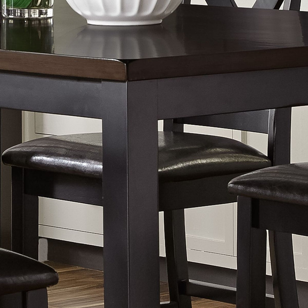 Liberty Furniture Thornton 7 Piece Rectangular Table Set in Cream 464-CD-7RLS. Sitting pretty with the Thornton seven-piece rectangular table set. Crafted of rubberwood solids and MDF with mango veneers, this set features a black finish with a brown top and includes six x-back side chairs and a rectangular leg table. The leg table is large enough to seat six chairs, while still being great for small spaces. The side chairs feature a padded upholstered seat in black vinyl, tapered legs, and nylon chair glides to protect your flooring. This entire seven-piece set ships in one box. The Thornton seven-piece rectangular table set works great for small spaces.