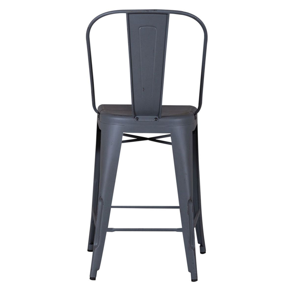 Liberty Furniture Vintage Series Bow Back Counter Chair in Grey 179-B350524-GY (Set of 2). Gather around with the Vintage Series Counter chair. Bow Back styling crafted of metal tube with bent metal accents this counter chair, finished in a beautiful navy with wear thru. Perfect for your bar area or dining room, the Vintage Counter Chair works in any decor from farmhouse to urban living.