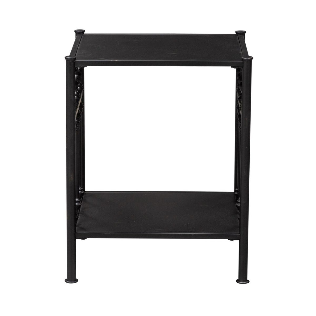 Liberty Furniture Vintage Series Open Nightstand in Black 179-BR61-B. This industrial open night stand is the perfect way to enhance your room with a classic vintage style. The distressed metal finish paired with turned spindles create a truly unique look. This night stand comes in many color options, making it universal and adaptable to any space, while offering a unique designer look.