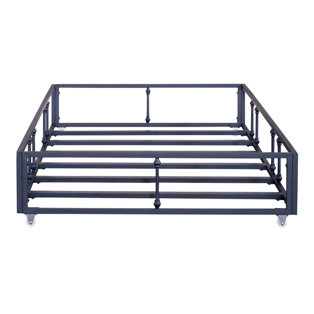 Liberty Furniture Vintage Series Twin Metal Trundle in Navy 179-BR11T-N. Add an extra bed without taking up any additional room with the Vintage Series trundle. Crafted of metal tube and finished in a beautiful antique white with wear thru. The trundle features turned spindles for decorative appeal and easily stores underneath the Metal Day bed when not in use. Features casters for ease of movement.
