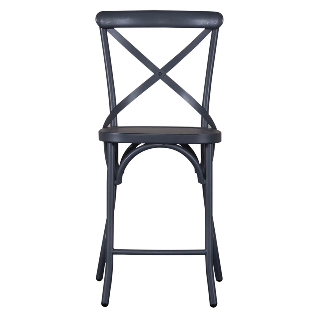 Liberty Furniture Vintage Series X Back Counter Chair in Navy 179-B300524-N (Set of 2). Gather around with the Vintage Series Counter chair. Bow Back styling crafted of metal tube with bent metal accents this counter chair, finished in a beautiful navy with wear thru. Perfect for your bar area or dining room, the Vintage Counter Chair works in any decor from farmhouse to urban living.