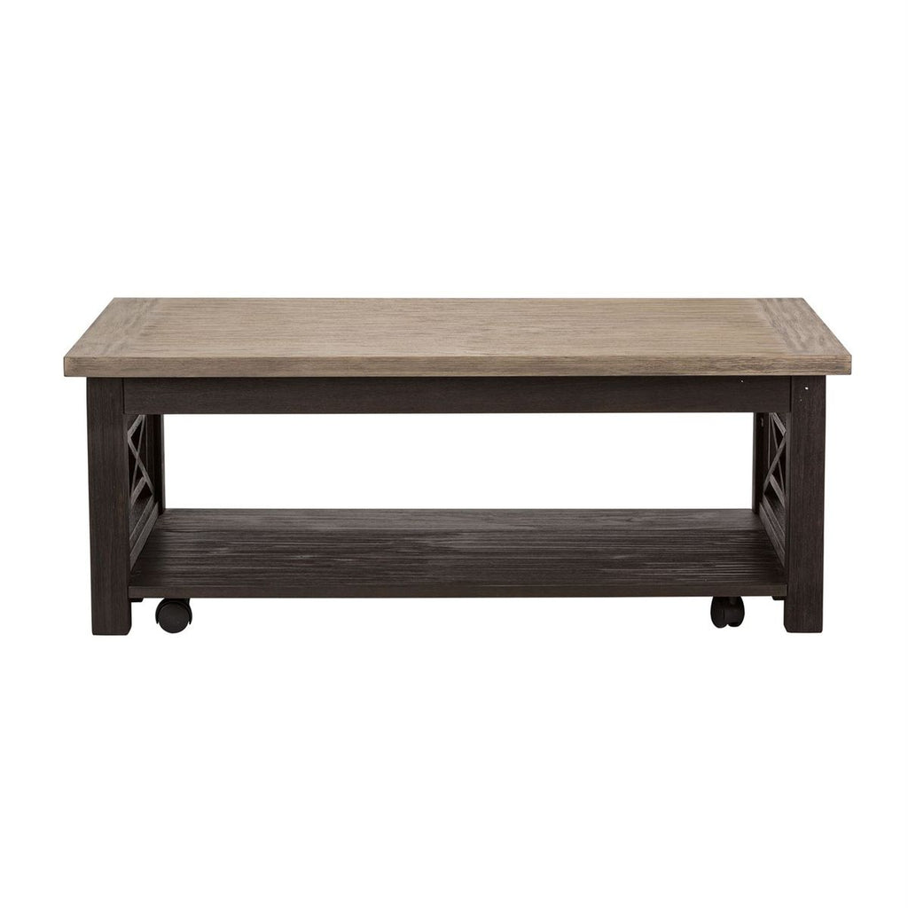 Liberty Heatherbrook Cocktail Table in Charcoal and Ash 422-OT1010. The unique two tone charcoal and ask finish works well with a variety of upholstery fabrics.