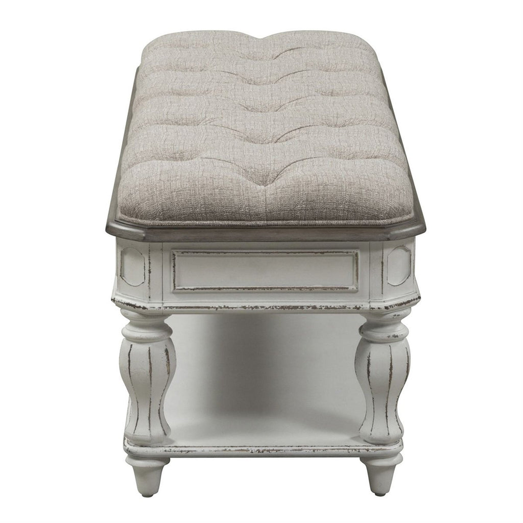 Liberty Magnolia Manor Bed Bench in Antique White 244-BR47. Blending of European influences makes Magnolia Manor a truly unique style for any living space. Warm antique finishes and artistic distressing along with grand scale a group to be passed to generations.