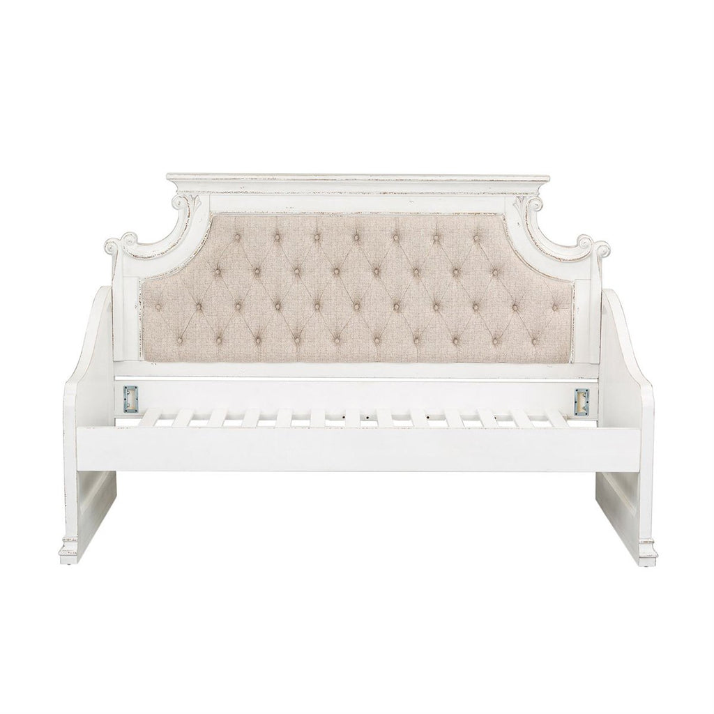 Liberty Magnolia Manor Twin Daybed in Antique White 244-DAY-TDB. Blending of European influences makes Magnolia Manor a truly unique style for any living space. Warm antique finishes and artistic distressing along with grand scale a group to be passed to generations.
