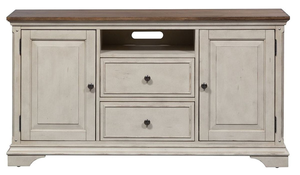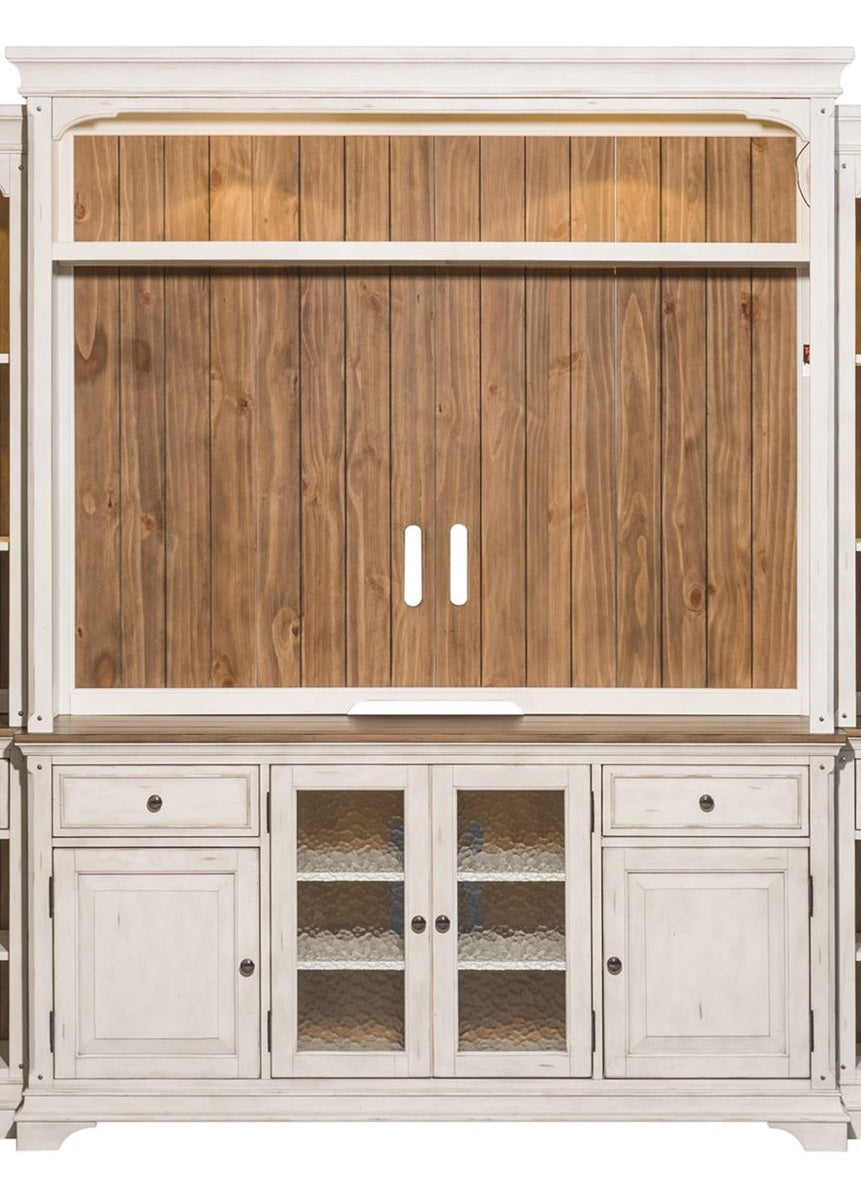 >Liberty Morgan Creek 66" Entertainment TV Stand with Hutch Antique White. Traditional Living is design that combines for a grand feel of the past with todays luxurious lifestyle. Warm antique finishes and artistic distressing along with grand scale a group to be passed to generations.