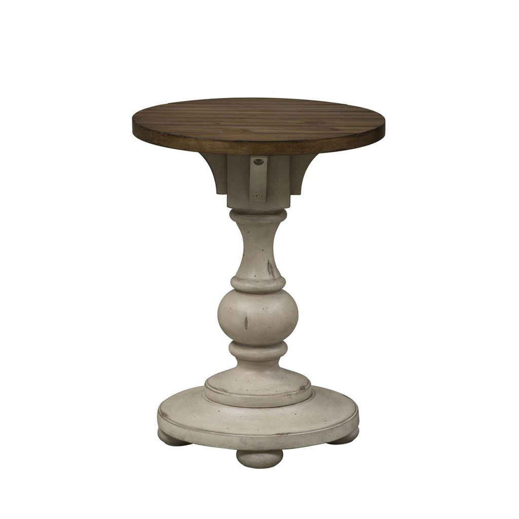 Liberty Furniture Willowrun Round Single Pedestal Table in Rustic White