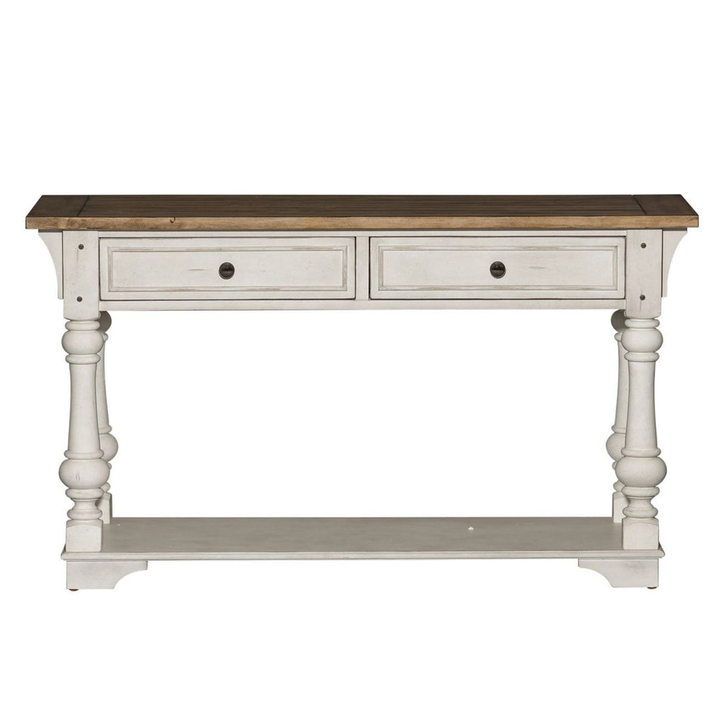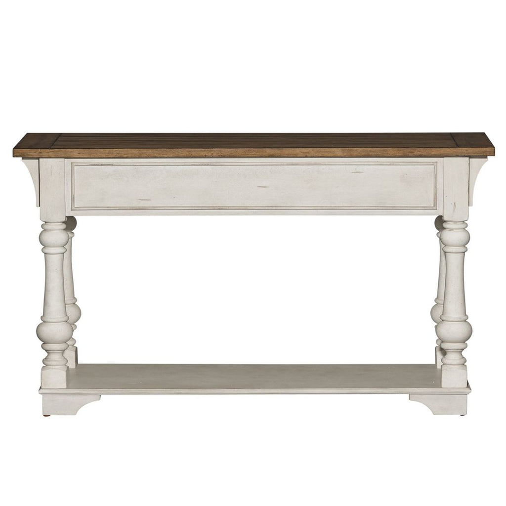 Liberty Morgan Creek Sofa Table in Antique White 498-OT1030. Traditional Living is design that combines for a grand feel of the past with today's luxurious lifestyle. Warm antique finishes and artistic distressing along with plank tops.
