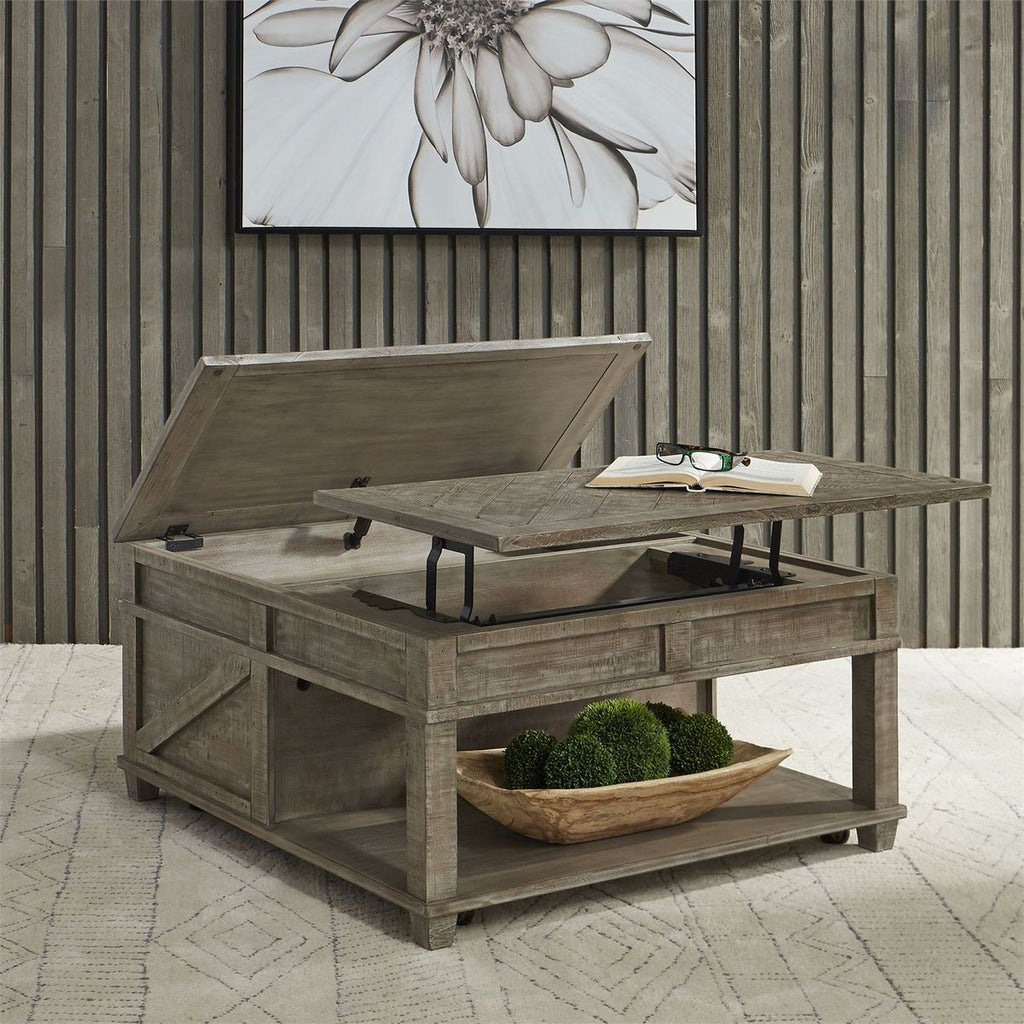 Liberty Parkland Falls Square Lift Top Cocktail Table in Weathered Taupe, 36W x 36D x 19H, 117lbs.