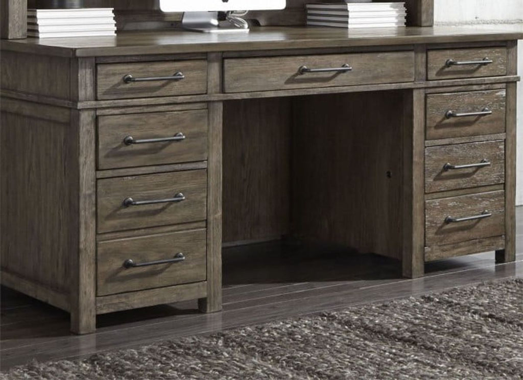 Liberty Sonoma Road Desk/Credenza in Weather Beaten Bark, 66W x 32D x 31H, 289lbs.