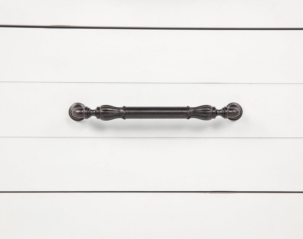 Charming and functional, this two-drawer nightstand blends classic design with thoughtful details. A vintage white finish softens the ornate carvings and sculpted base, while antique bronze handles bring graceful contrast. Dual USB ports are hidden at the back for modern convenience, while felt-lined drawers offer protected storage. Built from poplar and engineered wood, it balances timeless beauty with everyday function. Key Features: • Two-drawer nightstand with carved details and sculpted base for traditional appeal • Vintage white finish brings an aged, romantic tone with softly distressed edges • Antique bronze handles add decorative contrast and timeless character • Dual USB charging ports (USB-A and USB-C) discreetly built into the back panel • Felt-lined top drawer and smooth glides ensure soft, functional storage access • Crafted from poplar and engineered wood for durable, heritage-inspired beauty