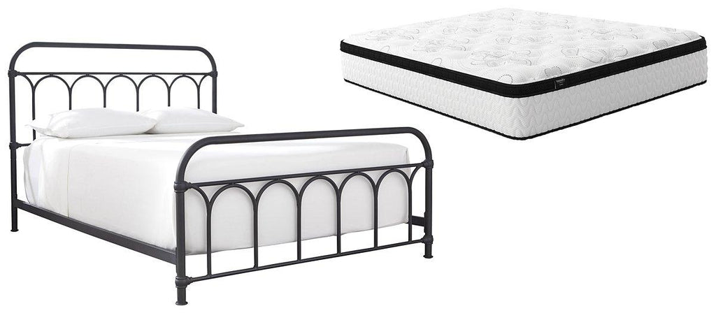 Looking to bring back a sense of bygone charm? Dream it, live it with this metal bed. Its matte black frame with moulded "fittings" brilliantly mimics wrought-iron beds from yesteryear, for a look that’s perfect for your modern farmhouse or cottage-quaint escape. The addition of a hybrid innerspring mattress allows you to enjoy endless possibilities for restful sleep. Plus, the mattress arrives ready for quick and easy setup. Simply bring it to your room, remove the plastic wrap, and unroll.
