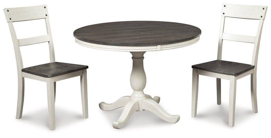 This dining room table has all the right ingredients for farmhouse-inspired style with a casual vibe. It’s beautifully crafted with a fresh white finish and a dark brown wood tone top for gently weathered charm. Table's round design makes for great flow and a friendly, inviting feel.