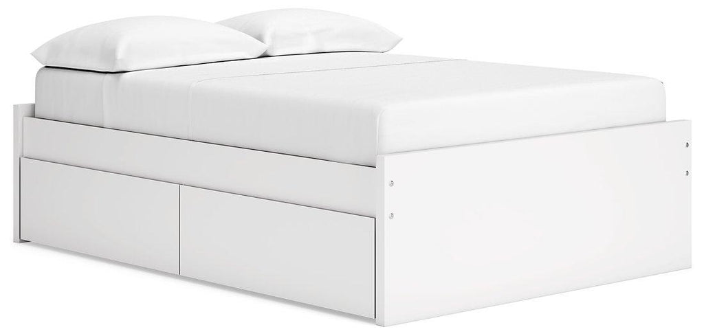 Create the modern bedroom of your dreams. This queen platform bed offers a minimal design with maximum style, combining ultra-clean lines and an easy-elegant solid white finish with a hardware-less aesthetic. Four spacious storage drawers with ball-bearing glides make putting things away a snap. There's no box spring or foundation needed, so you can splurge on a mattress that's sure to carry you away to a soothing place.