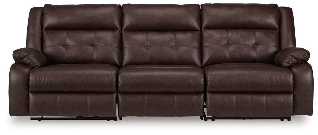 Elevate the everyday with this power reclining sectional sofa. With easy one-touch reclining and spacious seating, the piece offers relaxation and unparalleled coziness. Its faux leather upholstery is comfortably practical and beautifully enhanced with stylish contrast stitching. Factor in ample padded arms and a tufted lumbar area and you’ve got the perfect spot to wind down.