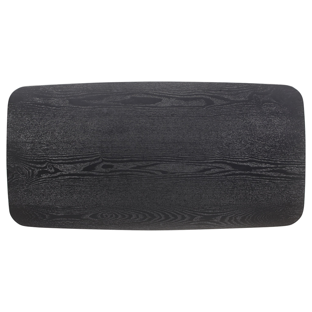 Amid the modern milieu, a three-piece coffee occasional table set stands as a beacon of mid-century inspiration. The coffee table, along with its twin end tables, boasts a black finish so deep it seems to hold secrets within its ash veneer wood grain. Elegant angles converge in the 45-degree chamfered edge profile, softening the silhouette while maintaining a crisp, architectural line. This ensemble, crafted from a harmonious blend of solid and engineered wood, is a tribute to both form and function, a striking centerpiece to any gathering space where stories are shared over cups of coffee.