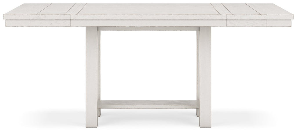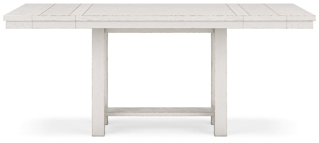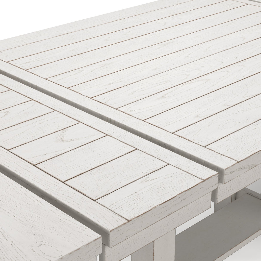 This dining package is sure to impress come mealtime. With its antiqued white finish and a planked effect tabletop, farmhouse-style dining has never been so fashionable. All that’s missing is you and your family.