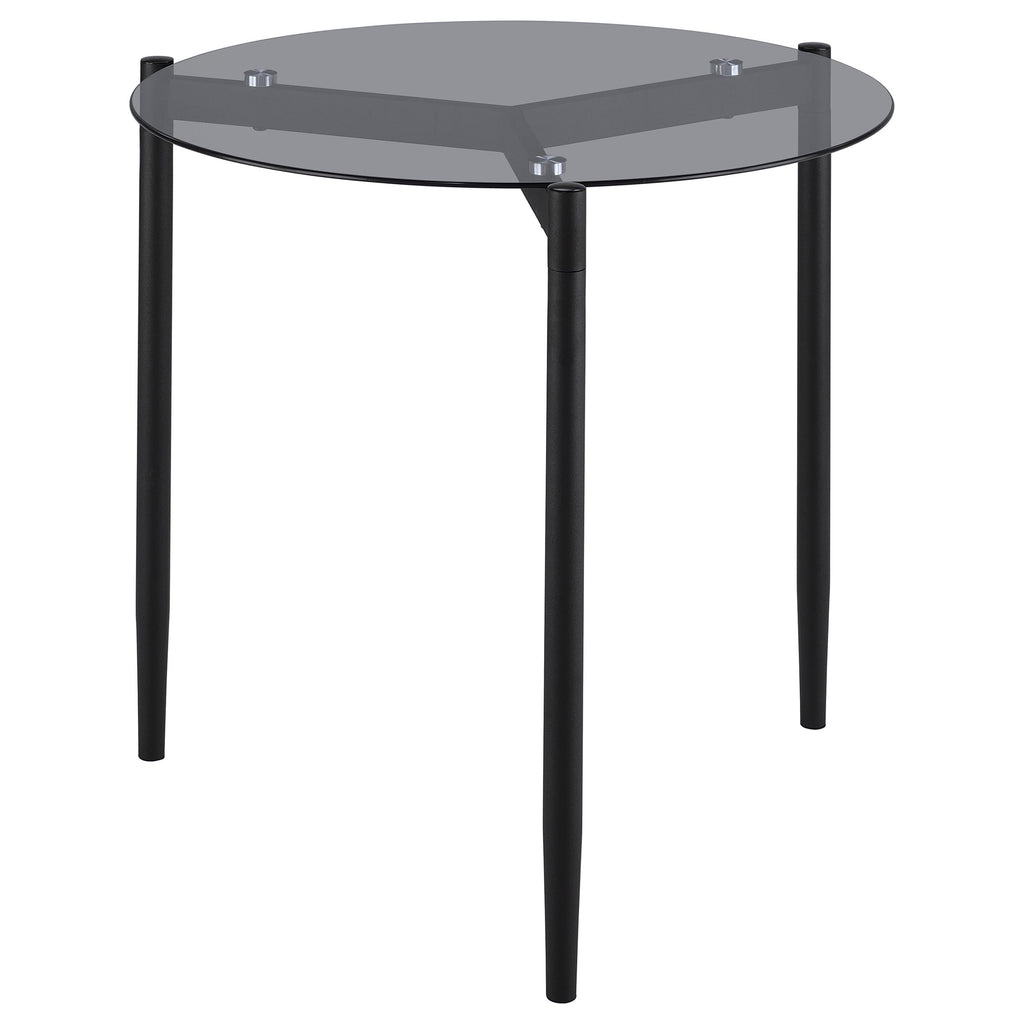 This contemporary end table showcases a tempered smoked glass top that brings both style and durability to your living space. Supported by a sturdy metal base with a black powder-coated sandy texture, it offers a sleek and modern look. Ideal as an accent or side table, its compact round design fits effortlessly into any room. The minimalist construction and refined materials make it a versatile piece for modern interiors. Key Features: • Modern end table with a sleek, round design for versatile use • Tempered smoked glass top provides lasting strength and sophistication • Sturdy metal base with a black powder-coated sandy texture finish • Durable materials and construction ensure reliability over time • Compact size perfect for small spaces, living rooms, or offices • Multifunctional as a side table or accent table for added utility