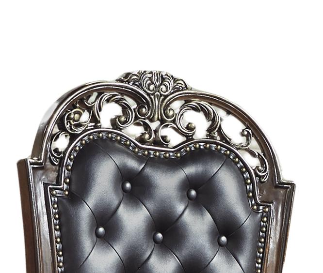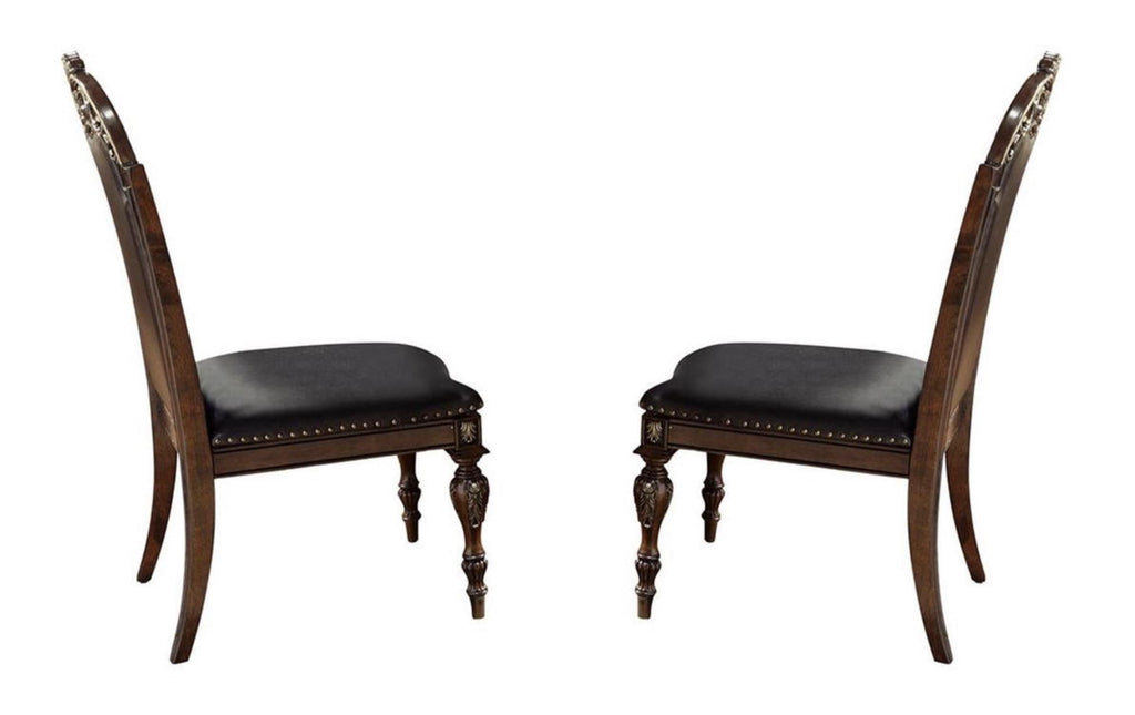 Cosmos Furniture's Rosanna traditional style Side Chair in cherry finish wood comes as a Set of Two (2) Chairs. The graceful elegance of our Rosanna collection makes every meal a celebration. Expertly crafted of solid hardwoods and resin with selected veneers, hand-rubbed rich cherry finish. The Rosanna dining side chair has front turned spindle legs accompanied by finely detailed ornate carvings in a brushed gold. These handsome side chairs are upholstered in leather-like material. Chairs are sold as a set of two (2). Matching Rosanna Dining Table, more Rosanna Dining Chairs, Rosanna Dining Hutch, Rosanna Dining Buffet and Rosanna Dining Server are sold separately.