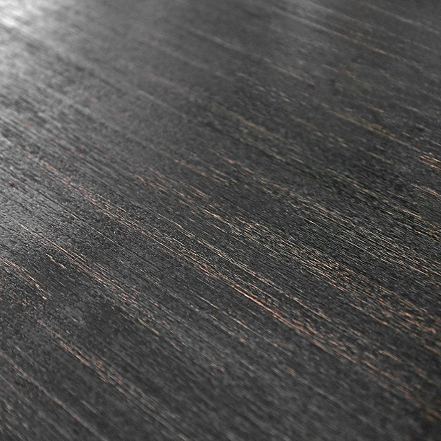 Rustic charm meets upscale design in the form of this stunning collection. The rustic wood grain and antique black finish take you to a charming farmhouse somewhere in the countryside, achieving an inviting, homey atmosphere that will have family and friends coming back for more. Elegant beige linen-like chairs add sophisticated appeal with their wingback sides, button tufting and nailhead trim. Product Dimensions: 54"W x 54"L x 36"H