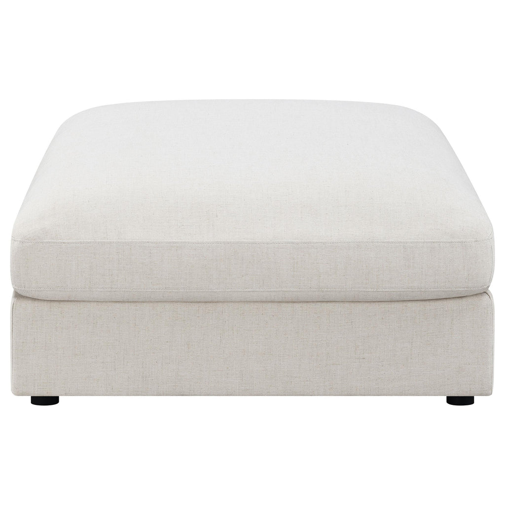 Covered in a linen-like fabric all around, this super comfy five-piece sectional offers all the seating you need in an open concept living room or entertainment area. Designed with two armless chairs, two corner chairs and a single oversized ottoman, this contemporary modular sectional offers reversible back pillows and jacquard accent pillows that you can really sink into. Black feet peer from beneath, offering a slight elevation for rugs and other flooring. With an L-shape design, this sectional works in a variety of room dimensions. A spacious ottoman also doubles as a coffee table, keeping a tray of refreshments and snacks when hosting guests.