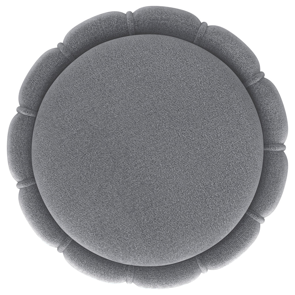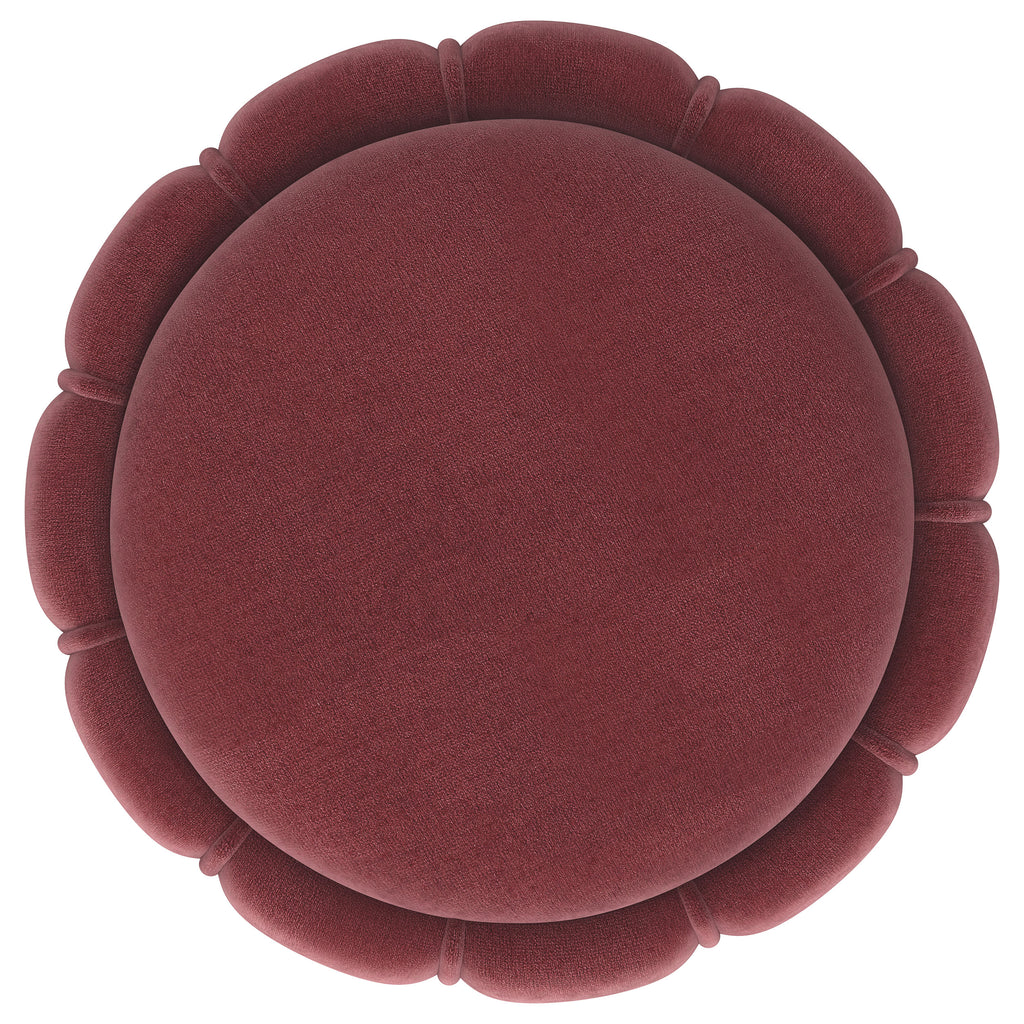 Put finishing touches on a chic decor with a modern glam ottoman. Its hourglass silhouette is playful and elegant, with a wide band highlighting in a bright gold finish. The round ottoman is a compact addition, offering a perfect spot to prop your feet. It easily serves as an extra seat when entertaining, and can even serve a spot to stash a book or your phone. The ottoman features velvety soft upholstery in a chic color, with vertical piping that adds character and dimensionality.