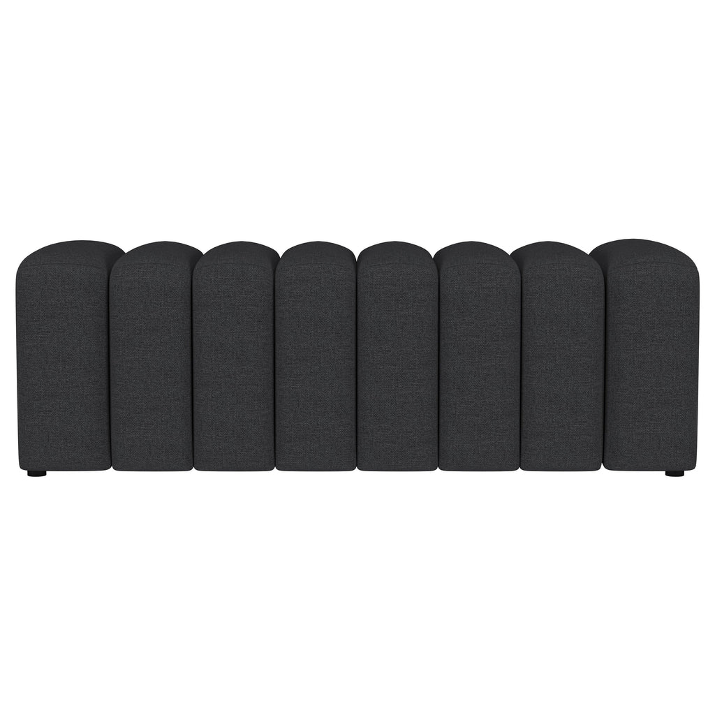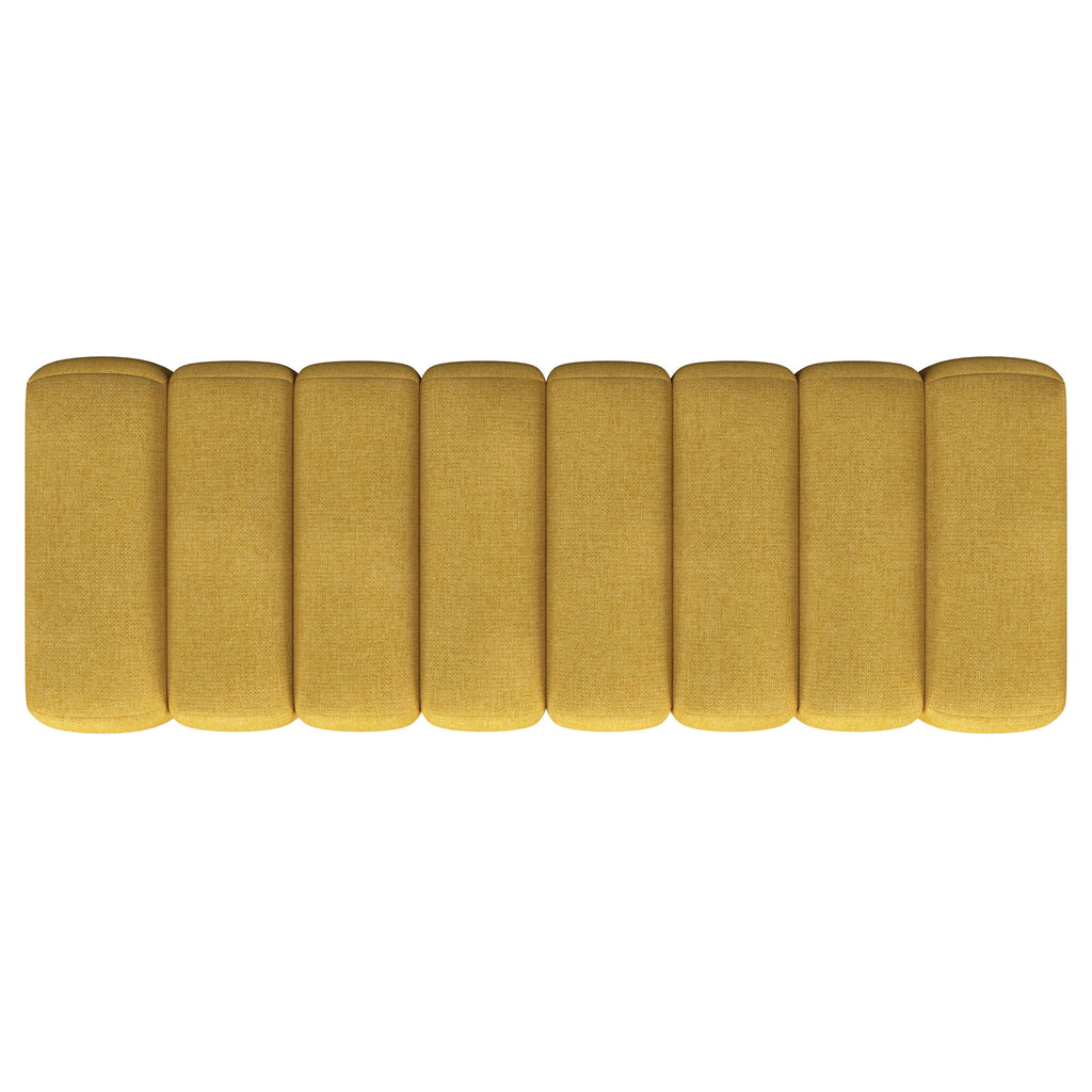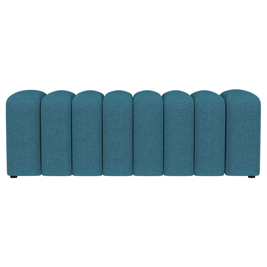 Introduce glam texture and dimension with a decorative upholstered bench. This modern creation features an undulating silhouette without arms or a back, offering sleek style and seating. Perfect for a sophisticated foyer or living room, it adds a pop of color and rich dimensionality with subtle variation in textured fabric. It makes a chic replacement for a coffee table in a linear sitting area, complete with foam cushioning that's firm enough to host a serving tray. Minimal feet create a seamless look and feel in any setting.