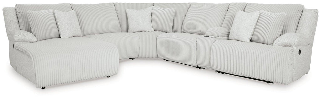Experience unparalleled comfort with this reclining sectional with chaise. It’s a stylish and invitingly soft look—made all the more appealing by cozy corduroy cushions that feel great and add a touch of texture. The rich chocolate brown upholstery effortlessly blends into your decor, making it a gorgeous addition to your home. So sit back and unwind in this spacious set, perfect for gatherings with friends and family.