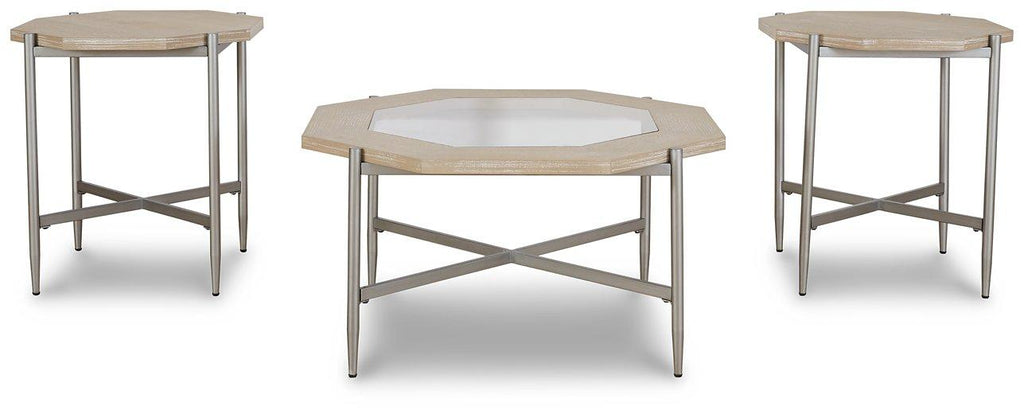 Striking and contemporary, this table set is a perfect balance of line and form. Geometric shapes are nicely paired in the hexagonal top and X-shaped base. A glass insert adds to the coffee table's distinctive composition. Perfect for smaller space living, this set can be arranged in a variety of configurations to suit the moment or your mood.