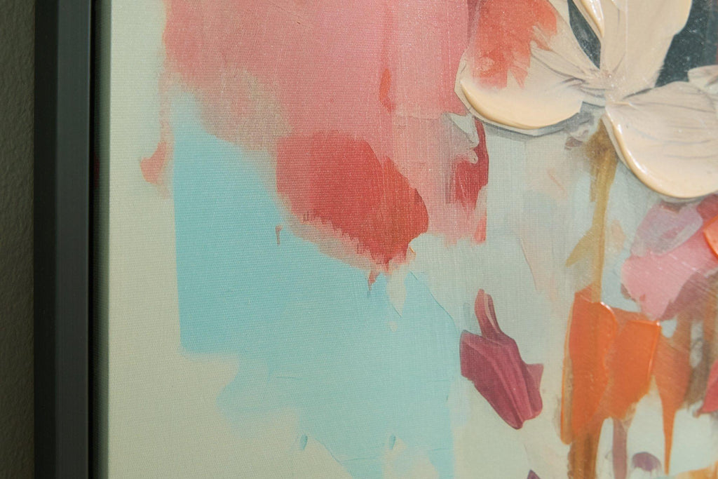 Brighten up your space with this lively and cheerful contemporary wall art. Featuring a vibrant explosion of bold hues, floral elements and hand-painted embellishments, this contemporary piece exudes gallery-quality style worthy of a special place in your home.