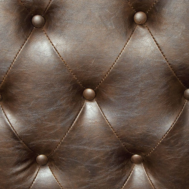 VAUGH Rustic Brown Accent Chair, 33"W X 30"D X 43 3/4"H, 68.2lbs. For those in need of an accent piece that is both comfortable and luxurious, this chair and ottoman combination is the perfect choice. The chair features button tufting and nailhead trim, while the ottoman is smooth with nailheads as well. On top of that, both are upholstered in rustic brown leatherette for that attractive, worn-out look. Features: Traditional Style Button Tufting w/ Nailhead Trim Cabriole Legs Matching Ottoman Available Leatherette Rustic Brown