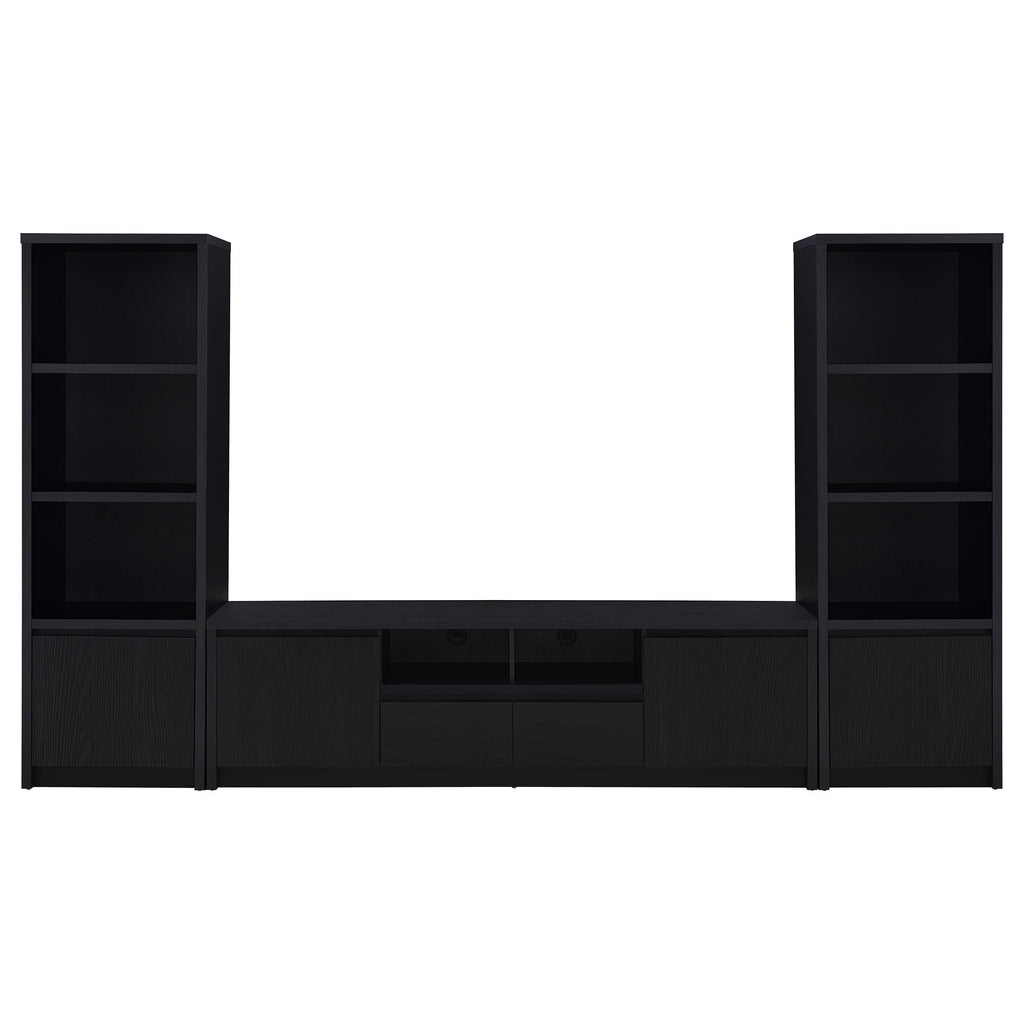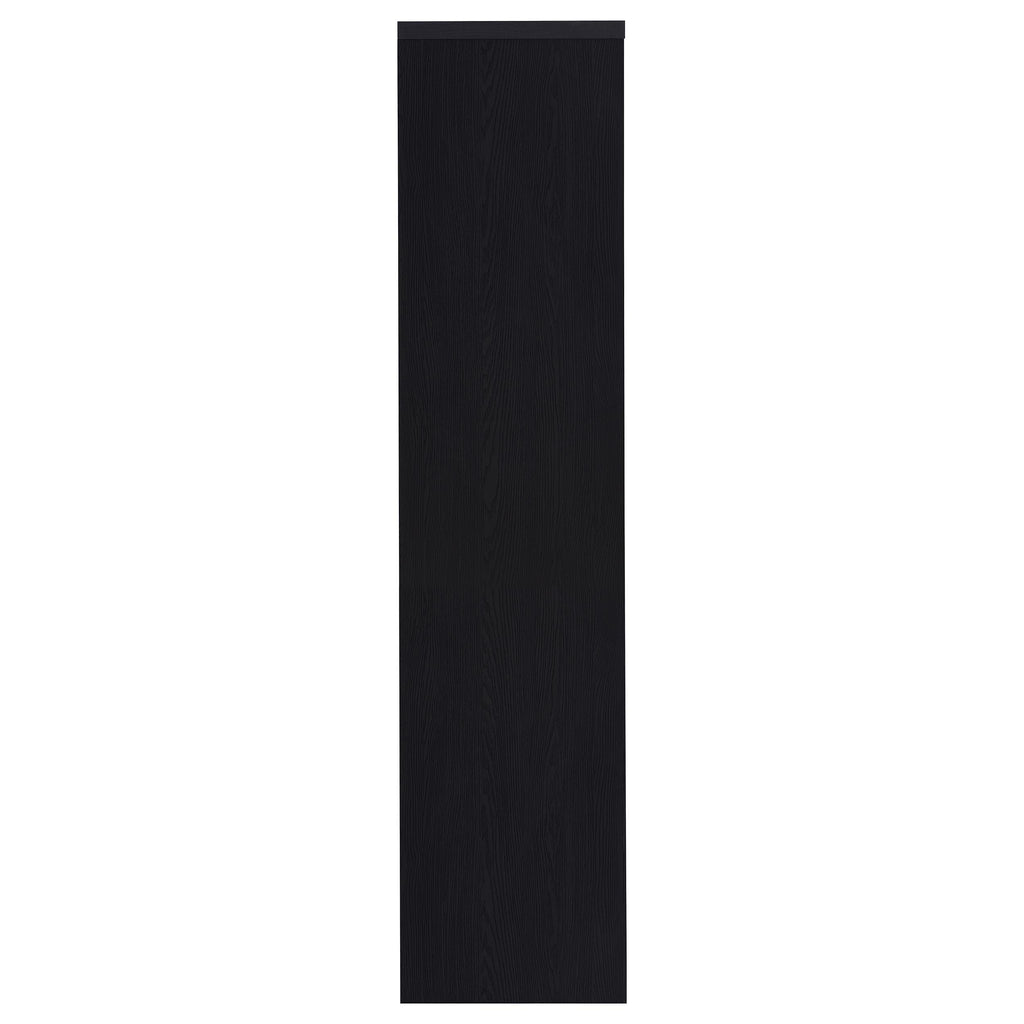 This contemporary media tower combines functionality and modern design in a sleek black finish. Built from durable engineered wood with a scratch-resistant laminate veneer, it features three open shelves for organizing media devices, books, or decor. A bottom cabinet offers concealed storage to keep clutter at bay. Its tall, clean-lined silhouette provides vertical storage, perfect for maximizing space in living rooms, home offices, or entertainment areas.